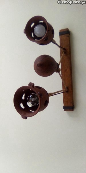 2 Candeeiros rústicos em barro, madeira, ferro e corda - 50,00 euros cada um