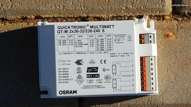 Balastro electrónico Osram 2x26W-32W, novo, para lâmpadas fluorescentes reduz o consumo a metade.