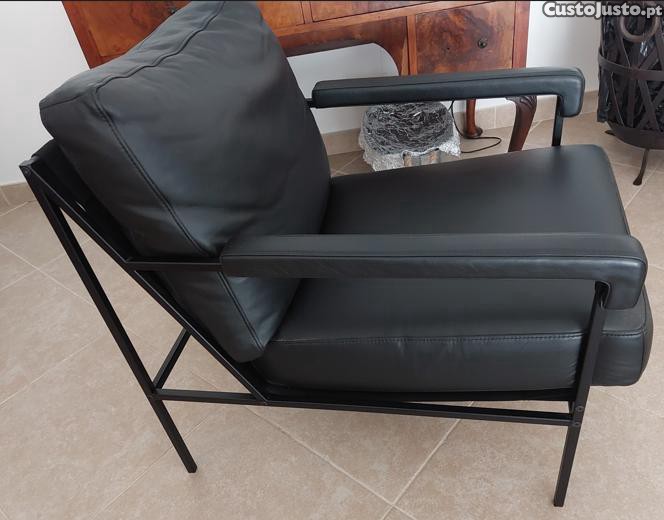 Cadeira de design Ihreborn Seventy, NOVA em pele preta e estrutura em metal