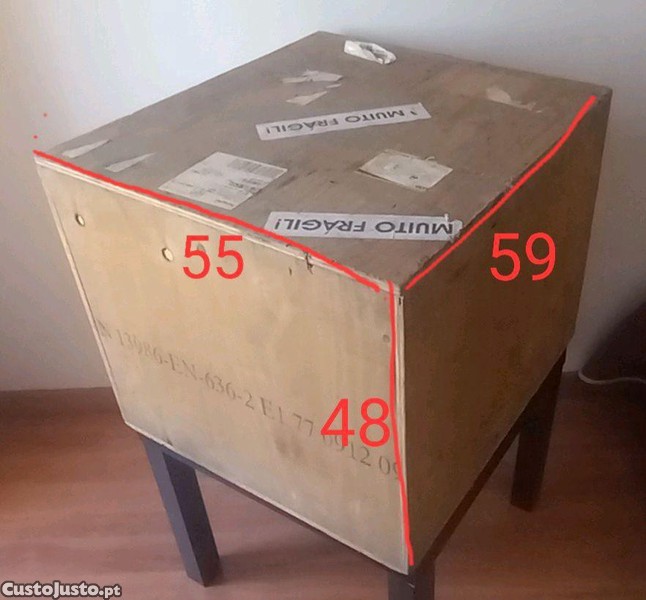 Caixa em contraplacado maritimo, leve e muito resistente, 59 x 55 x 48cm.