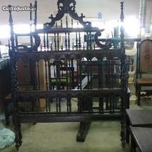 Cama madeira maciça trabalhada com duas mesas de cabaceira