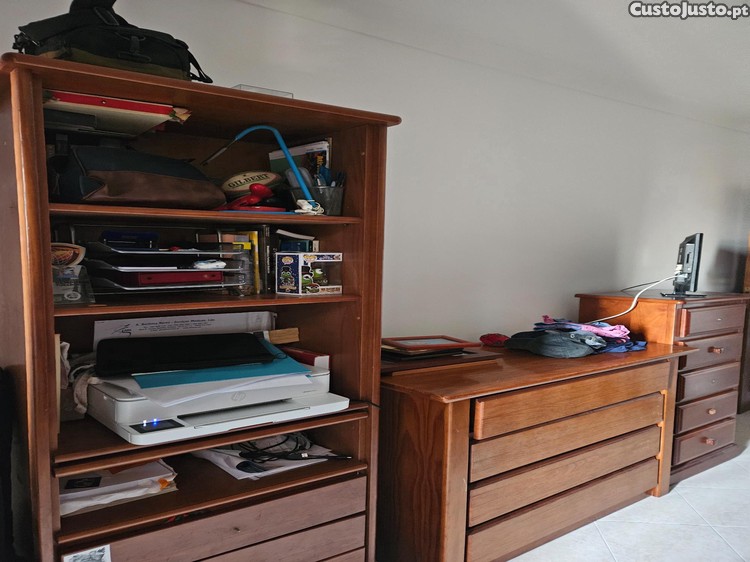 Vendo beliche com colchões em bom estado, cómodas e estante.