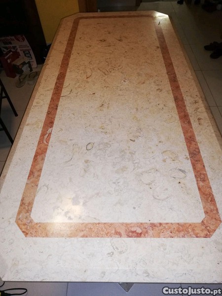 Mesa de sala em mármore rosa. Medidas: 1,75m de comprimento, largura 0.90m
