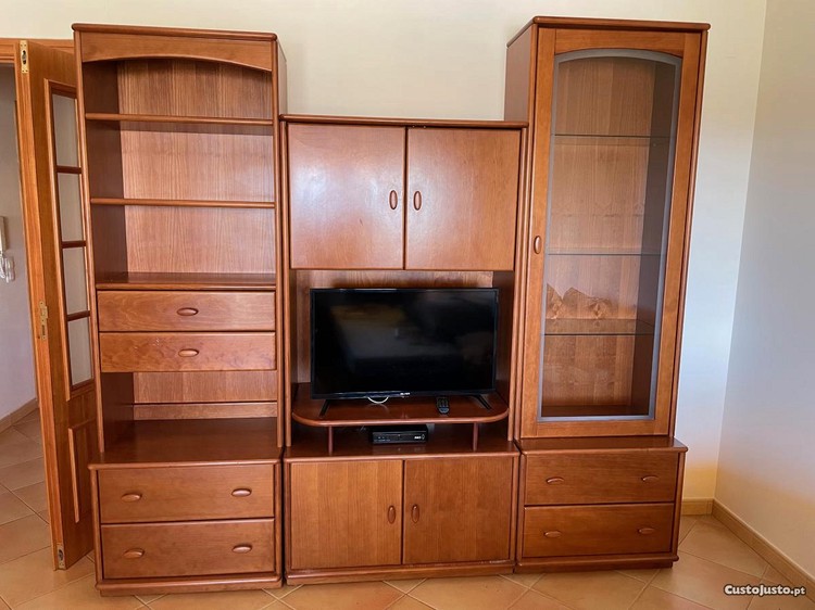 Móvel de Sala Pinho Mel com 3 módulos, robusto e em ótimo estado de conservação