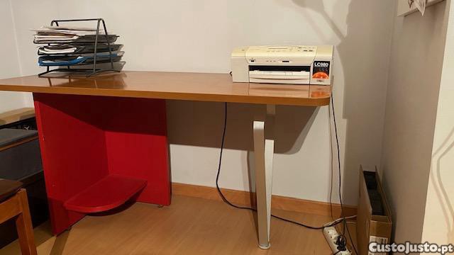 Secretária espaçosa de cor vermelha e madeira. Está como nova.