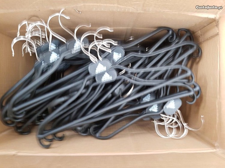 Lote de 250 cabides de qualidade profissional, são feitos com alma em metal e cobertos com material flexível e fofo; a publicidade, adidas, pode sair com facilidade pois é uma peça encaixada. Valor pelo lote 187,50 euros fica o preço por cada unidade a EUR0,75 são 4 caixas.