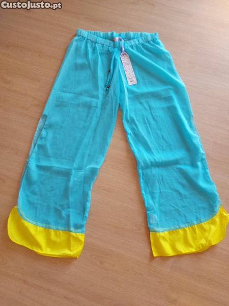 Preço: 8 €Calça leve turquesa e amarelo