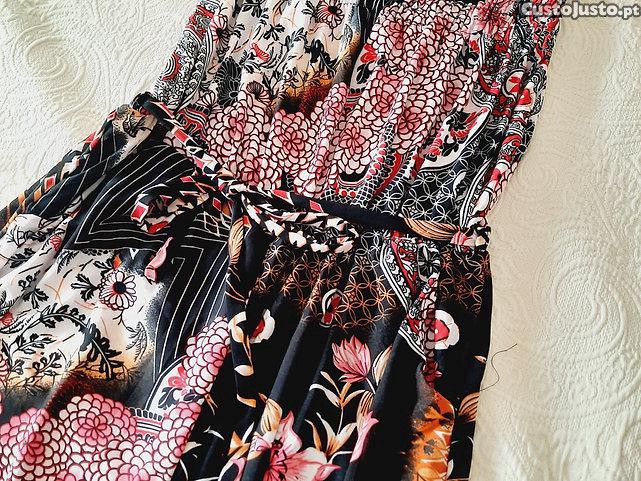 Macacão padrão em vários tons: rosa, vermelho, laranja, preto e branco