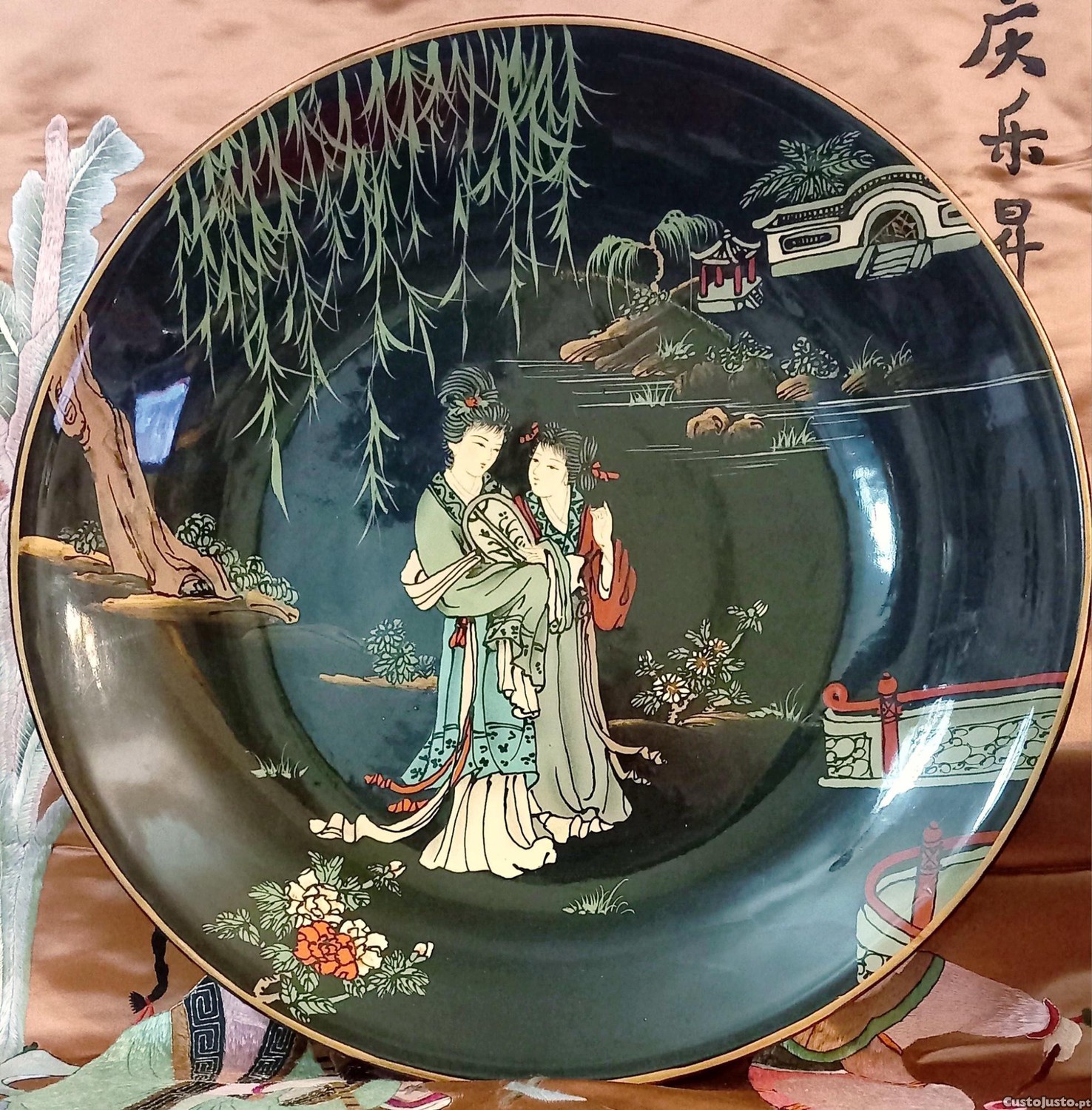 Preço: 195 €Antiga e grande placa Porcelana Chinesa, Família Negra,