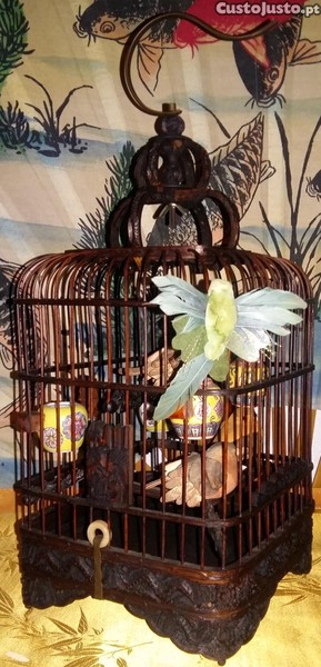 Bonita e Antiga Gaiola Chinesa Esculpida e Feita em Bambu, Dinastia Quing, Peça em muito bom estado.