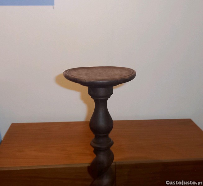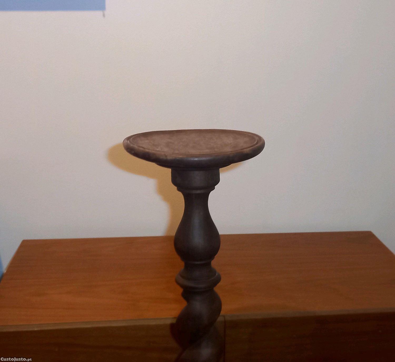 Coluna de madeira maciça trabalhada para colocar vasos ou estatuetas.
