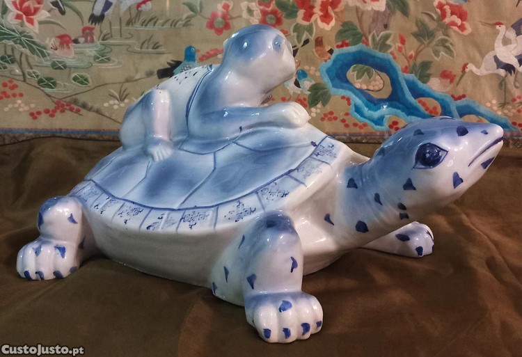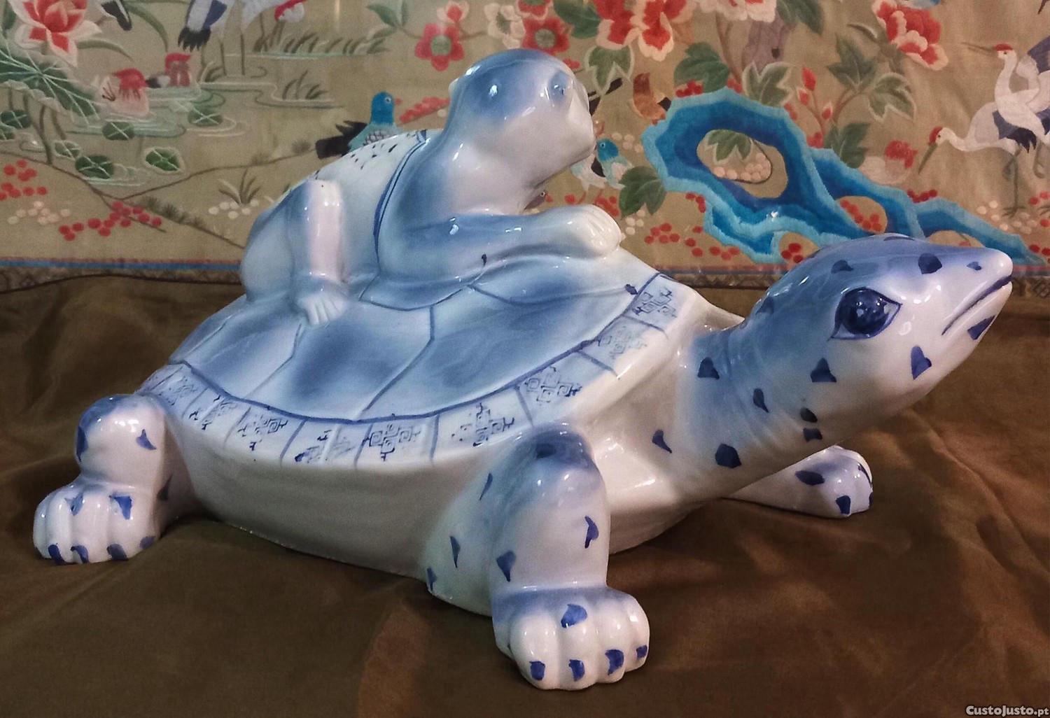 Disponível, Bonita e grande escultura em Porcelana Chinesa, Tartaruga dando Boleia a Macaco. 1938.1950,