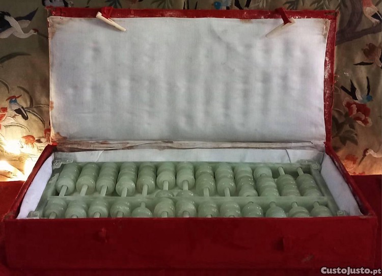 Preço: 135 €Disponível, Bonito e Antiga Calculadora Chinesa, ou Dito Ábaco, peça esculpida em Jade,