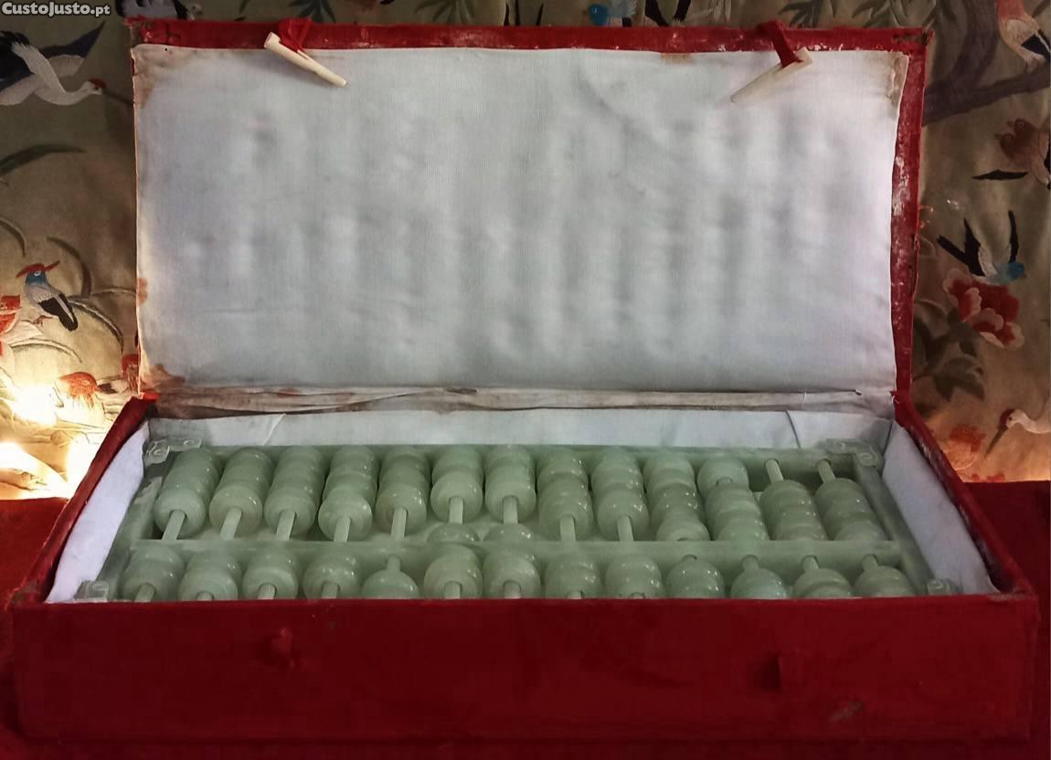 Disponível, Bonito e Antiga Calculadora Chinesa, ou Dito Ábaco, peça esculpida em Jade,