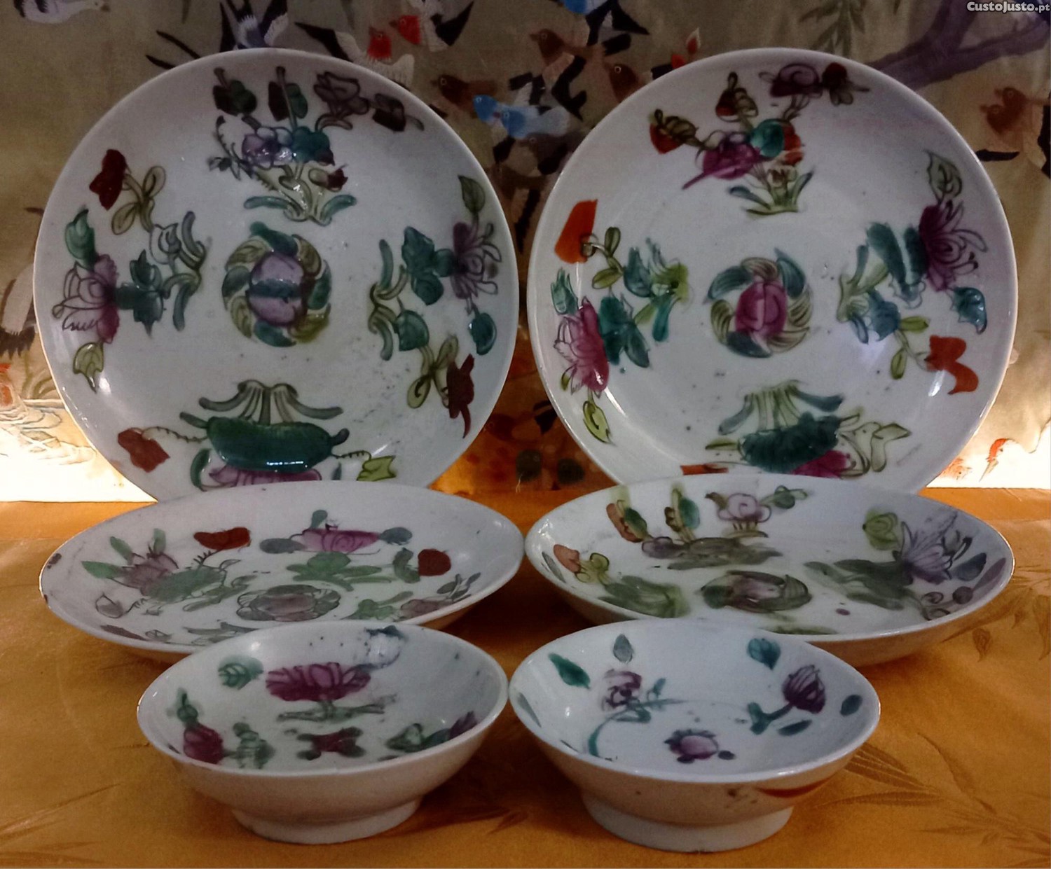 Disponível, Bonito e Antigo Lote, de peças em Porcelana Chinesa, Família Rosa,