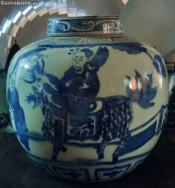 Disponível, Bonito e Antigo Pote em Porcelana Chinesa, Início Dinastia Qing, peça Decorada, com figuras Míticas, peça em muito bom estado, mede, 24,cm,alt. Peça muito Rara.
