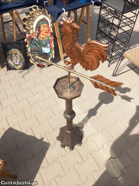 Preço: 275 €Galo dos ventos de bronze e latão patinado com suporte, antigo