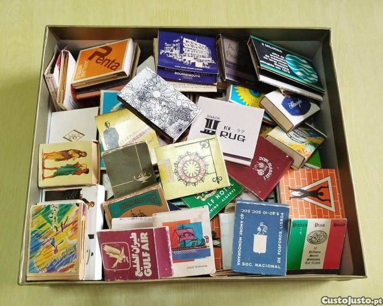 Mais de 100 carteiras/caixas de fósforos de diferentes dimensões e nacionalidades (algumas repetidas).
