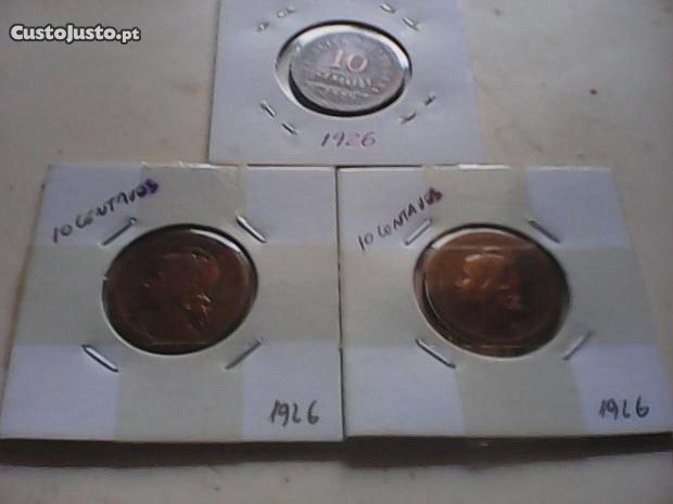 Lote de 3 moedas de 10 centavos de 1926, bem conservadas, veja as imagens.