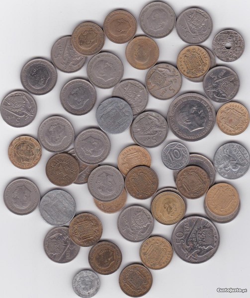Tenho para venda lote de 48 moedas de pesetas espanholas de Francisco Franco, Caudillo de Espanha, todas em bom estado de conservação, conforme as fotos.