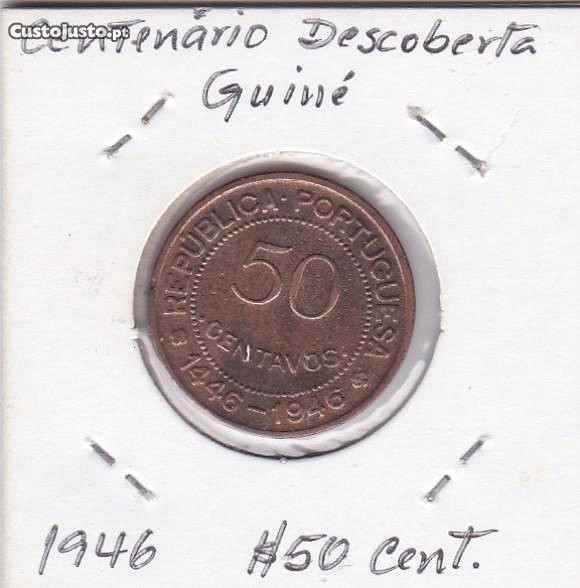 Vendo excelente moeda de $50 centavos bronze, da ex. colónia da Guiné, de 1946, comemorativa do centenário da descoberta da Guiné, veja as fotos.