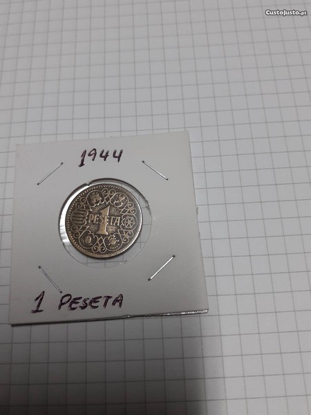 Vendo excelente moeda de Una peseta de 1944, as fotos demonstram o estado da moeda, na minha opinião bem conservada.