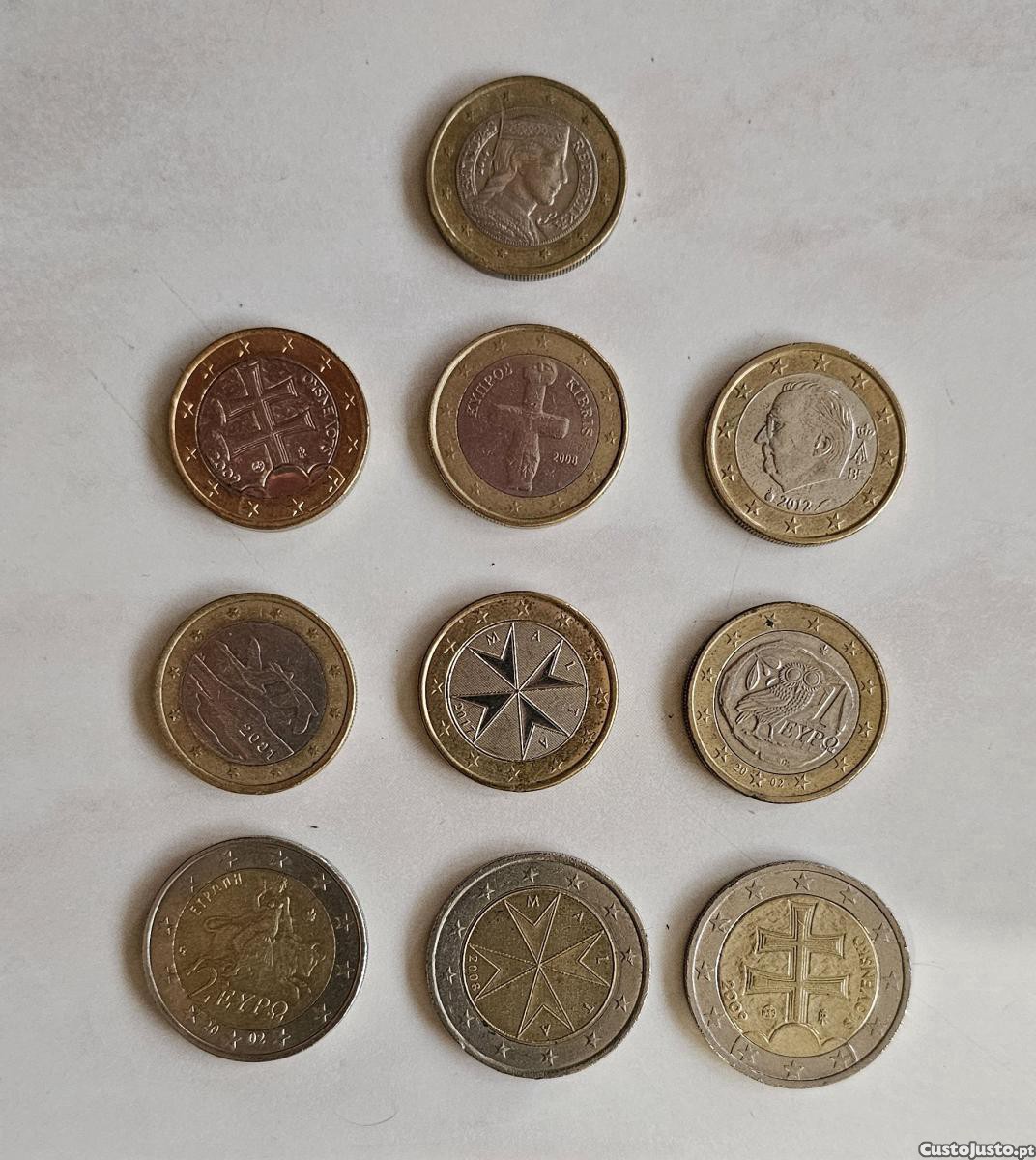 Moedas de 0,01 a 2 euros que aparecem raramente. Preço: