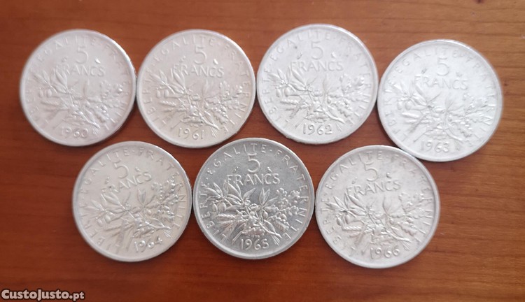 7 moedas em prata todas diferentes (de 1960 a 1966)