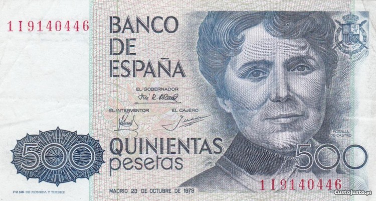 Vendo nota de 500 pesetas, de Rosalia de Castro, datada de 23 Outubro de1979 bem conservada, veja as fotos.
