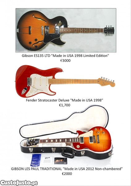 Fender Stratocaster, Gibson Les Paul, Gibson ES-135 Jazz