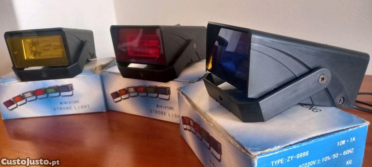 Vendo conjunto de 3 Strobe flash light com velocidade regulável. 10 euros cada, dou preferência a quem adquirir o conjunto. São aquelas luzes que ficam a piscar com ritmo certo durante os concertos ou musica discoteca.