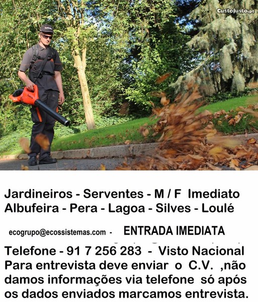 (Encarregados e Jardineiros) e sem experiência Serventes para entrada imediata.