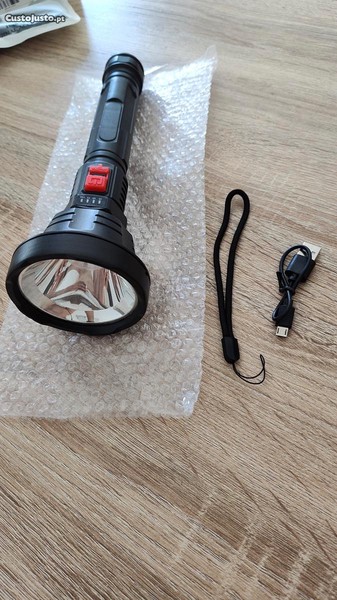 Funciona a bateria. Inclui cabo micro USB e fita de pulso/mão.