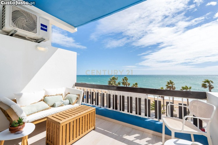 A truly beachfront apartment, no gimmicks, no obstacles: located on the real front line, directly facing the beach and pedestrian promenade, right in the heart of Quarteira. This spacious T2+1, fully renovated in 2023, is a rare opportunity to live (or profit) with the sea as your daily companion.