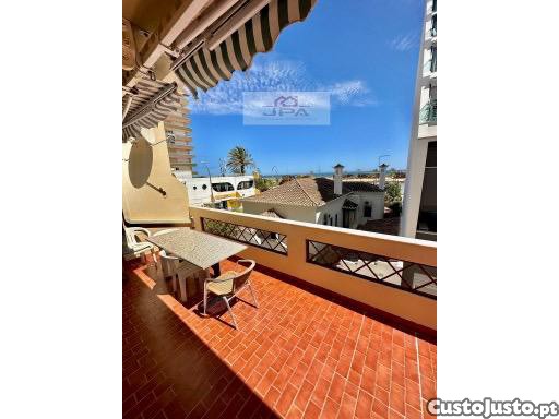 Apartamento de tipologia T1, com vista mar e terraço completamente equipado e mobilado, com ar condicionado na sala e quarto, terraço virado a sul em 2ª linha de mar. Capacidade 5 pessoas.