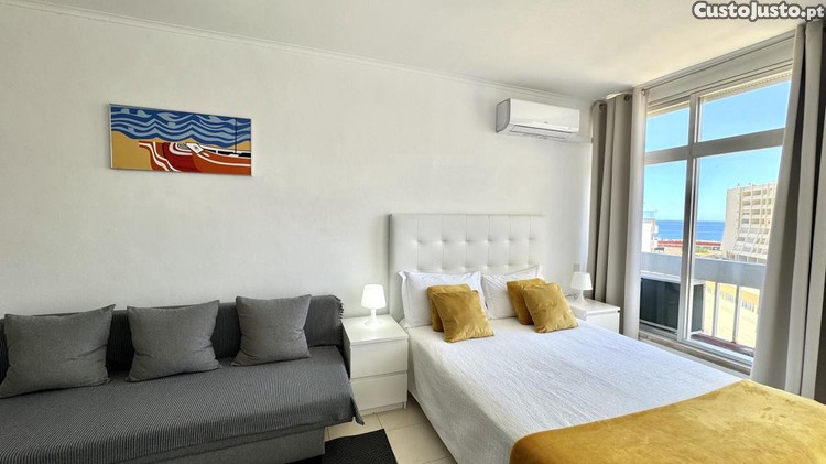 Arrenda-se apartamento T0 para Férias para 2 pessoas, a 100 metros da praia, com vista mar, totalmente mobilado e equipado com televisão, placa vitrocerâmica, forno, exaustor, microondas, frigorífico, máquina de lavar roupa, máquina de café, torradeira, varinha mágica, louça e utensílios para cozinhar, secador de cabelo e ferro de engomar.