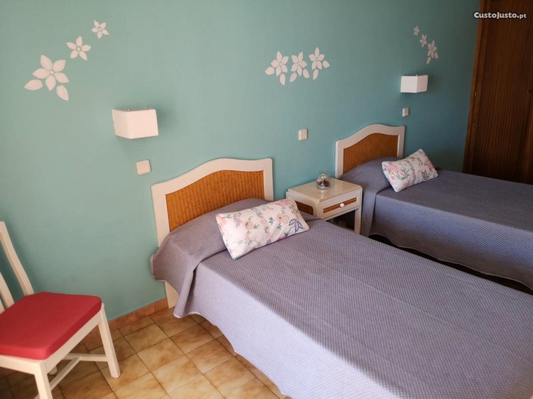 Dispõe de um quarto com 2 camas de solteiro e roupeiro, uma sala com 1 sofá de casal e 1 sofá com gavetão de solteiro.