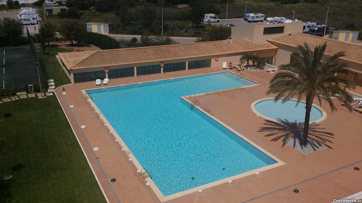 Piscinas exterior e interior climatizadas, campo de ténis, futsal e squash
