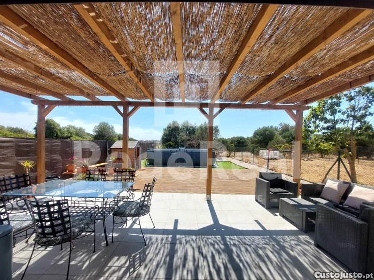 Na parte exterior da casa goza de um amplo espaço de terreno com instalação de uma unidade de piscina móvel, uma zona delimitada para animais de porte, bem como arrumos, e acesso por portão automático para entrada/saída privativa.