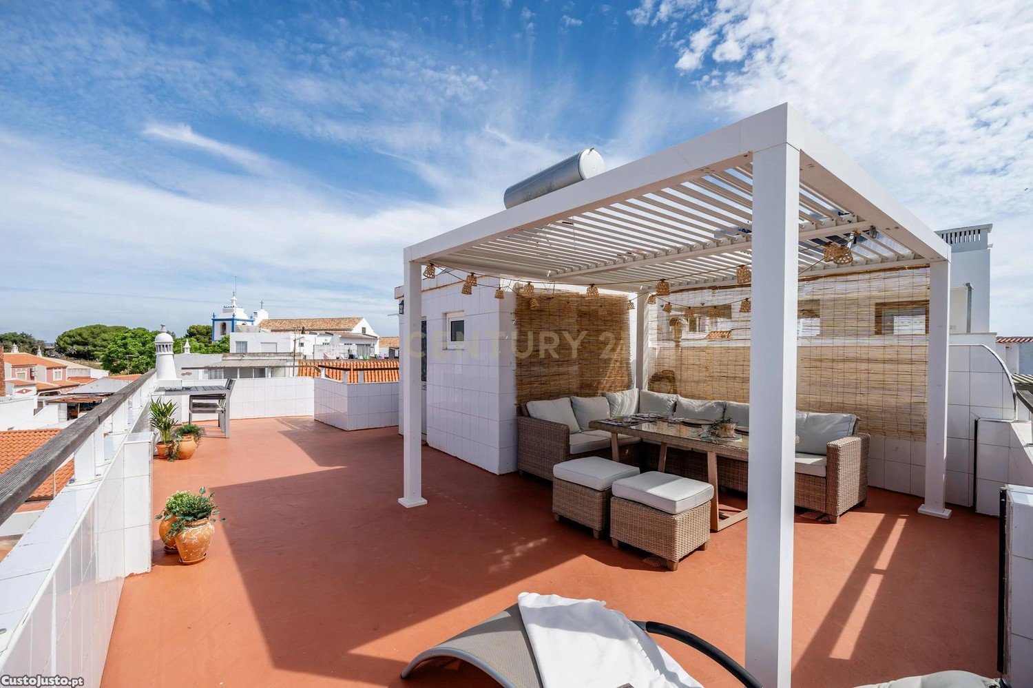 No topo da moradia, existe um amplo terraço de uso comum dos dois apartamentos, onde pode desfrutar de uma vida ao ar livre e vistas deslumbrantes sobre a ria, e de todo o ambiente circundante de casas típicas pintadas de branco que caracterizam a vila de Alvor.