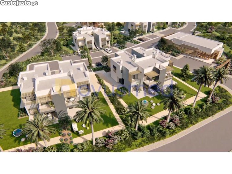 Moradias geminadas com piscina, em fase construção, com boas áreas e bastante luminosidade. Situadas em empreendimento turístico, junto a campo de golfe.