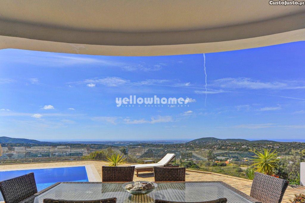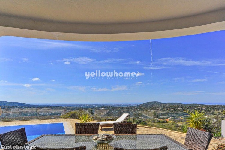 A Yellow Homes tem o prazer de apresentar esta moradia verdadeiramente excecional, situada no topo de uma colina com vistas panorâmicas sobre a paisagem algarvia até ao cintilante Oceano Atlântico. Do nascer ao pôr-do-sol, a luz em constante mudança e o cenário natural intocado criam um ambiente mágico e envolvente. O cenário perfeito para viver o dia-a-dia com qualidade e beleza. Situada numa zona residencial tranquila sem ruído de estrada ou perturbações, esta propriedade oferece serenidade total no coração do centro do Algarve. A poucos minutos das pitorescas vilas de Santa Bárbara de Nexe, Loulé e São Brás de Alportel, encontrará todos os serviços essenciais: supermercados, lojas, restaurantes, cafés e centros médicos. As praias douradas do Algarve, os melhores campos de golfe da Europa e o Aeroporto Internacional de Faro ficam a cerca de 20 minutos de carro. Construída em estilo tradicional e distribuída por dois pisos, a moradia oferece interiores amplos com janelas com vidros duplos que inundam os espaços com luz natural e emolduram as magníficas vistas para o mar. Quase todas as divisões e todos os terraços virados a sul oferecem uma vista desimpedida sobre a costa e os verdes vales. O rés do chão dispõe de um hall de entrada, dois quartos com roupeiros embutidos, uma casa de banho em suite, uma casa de banho adicional, e uma cozinha moderna totalmente equipada com lavandaria e acesso direto a um terraço com zona de BBQ. A sala de estar e jantar conduz a um espaçoso terraço parcialmente coberto, ideal para desfrutar do exterior ao longo de todo o ano, com o mar como pano de fundo. No primeiro andar encontra-se a suite principal com casa de banho privada e acesso a um terraço com vista mar deslumbrante. Um quarto adicional com casa de banho em suite completa este piso. O exterior dispõe de um jardim paisagístico com palmeiras, árvores de fruto e arbustos floridos. Vários recantos sombreados convidam ao relaxamento e a refeições ao ar livre. Junto á piscina existe uma ampla sala multiusos com pré-instalação de água e eletricidade. Ideal para transformar em ginásio, sala de cinema, estúdio ou suite de hóspedes. Uma oportunidade rara de adquirir uma moradia no topo de uma colina numa das localizações mais bonitas e procuradas do Algarve. Acorde todos os dias com uma vista mar deslumbrante e desfrute de um estilo de vida marcado pela tranquilidade e pelo bem-estar.A urbanização dispõe de vários campos de ténis e dois campos de padel, todos localizados dentro do comunidade. Contacte-nos para agendar uma visita