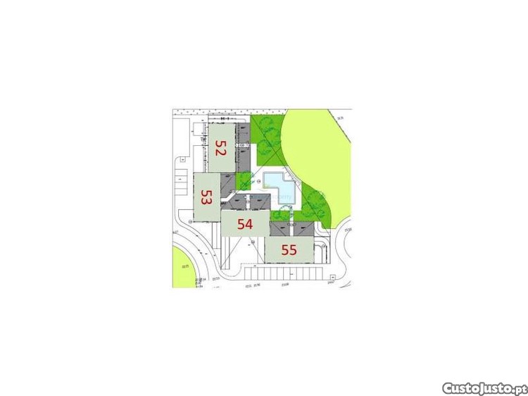 Lote 56: O terreno tem uma área de 833 m2 com finalidade de lote verde, equipamento privado e destina-se a construção de piscina/parque infantil com 1 piso acima da cota soleira, com uma área de implantação de 100 m2 e 30 m2 área de construção.