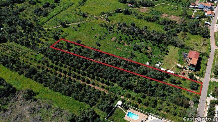 1540m2 plot of land located in Canhestros, Silves. This flat plot has several trees planted and is close to the main access road and has mains electricity and water connected to it. One end is within a low-density urban area