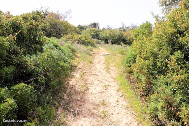 Terreno com ligeiro declive com várias árvores de sequeiro típicas da região como alfarrobeiras e oliveiras.