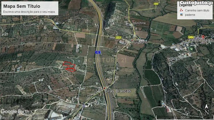 Terreno com 10.720 m2, situado no Cerro de São Vicente, muito perto de Paderne. Tem uma boa exposição e uma bela vista.
