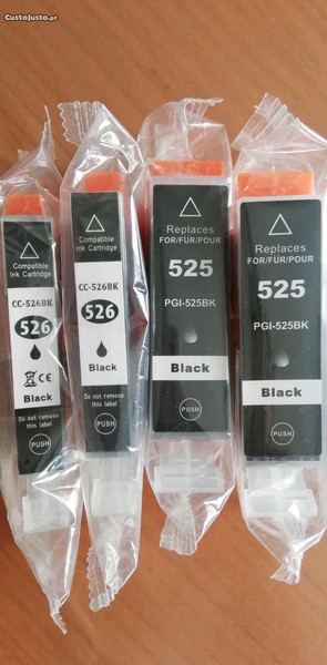 4 tinteiros 525 e 526, compatíveis para Impressora Canon, MG5250