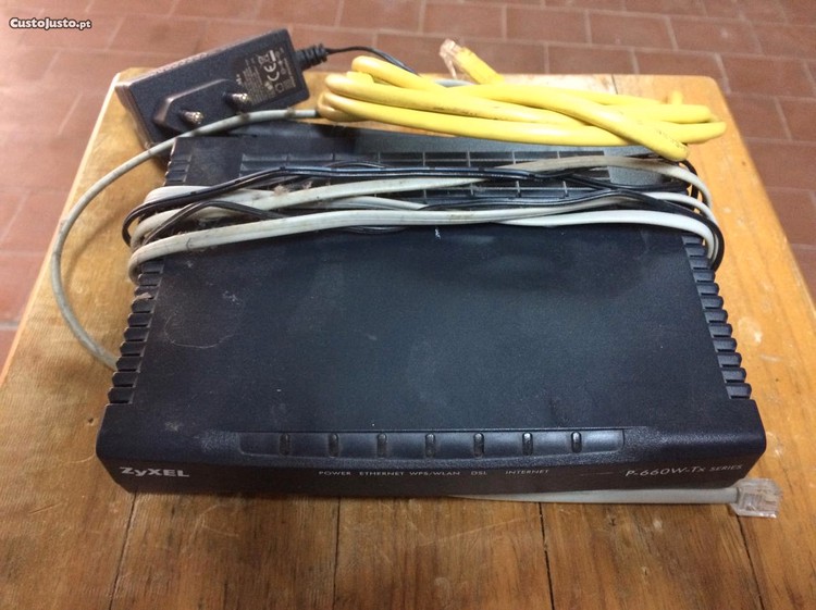 Vendo Router WiFi ZyXEL P-660W-Tx Series.Características (em inglês):ZyXEL P-660W Series is capable of supporting high-speed ADSL, ADSL2 andADSL2+ over existing copper lines. With speeds of up to 12 Mbps (ADSL2) or24 Mbps (ADSL2+), the P-660W Series offers higher data transfer rates andbetter bandwidth than traditional ADSL routers. Compliance with the802.11g wireless standard allows the P-660W Series to reach datatransmission speeds of up to 54 Mbps. This makes the P-660W Series yourfirst choice in expanding your network reach.ADSL Complia Ance- ANSI T1.41 A3 Issue 2- ITU G.992.1 G.dmt- ITU G.992.2 G.lite- ITU ADSL2 G.992.3, G.992.4- ITU ADSL2+ G.992.5- Reach-Exte Rended ADSL (RE ADSL)ATM Support A- 6 PVCs Support- ATM Forum UNI 3.1/4.0Firewall Security- Stateful Packet Inspect, Prevent DoS Attack- Access Control List (ACL) between LAN, WAN- Content Filtering- IP Packet Filtering & Generic Filtering- Real-time Attack Alert and logsRouting Support- IEEE 802.1d Transparent Bridging- IP Routing: TCP, UDP, ICMP, ARP- RIPv1 and RIPv2- IP Multicast IGMP v1/v2- IP Policy RoutingIP Management- SUA/Multi-NAT Internet Sharing- Multiple VPN (IPSec, PPTP) Pass-through- DHCP Server/Relay/Client- DNS Proxy- Dynamic DNS- UPnP SupportWLAN Features- 802.11g Compliance Speed Up to 54 Mbps- Comply with 802.11b- 64/128 Bits WEP Encryption- WPA (Wi-Fi Protected Access), WPA2- WPA-PSK, TKIP- External RADIUS Server Support- MAC FilteringPhysical Specifications- Dimensions: 181 (W) x 127 (D) x 36.5 (H) mm- Weight: 300 gEntrego em mão na zona de Armação de Pera