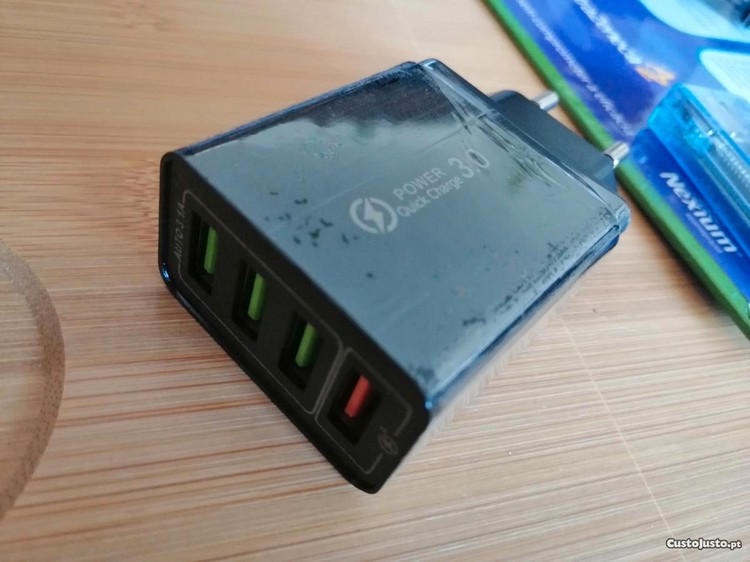 Vendo carregador com 3 saídas USB-A e 1 entrada Type-C, NOVO (ainda com a película de origem).