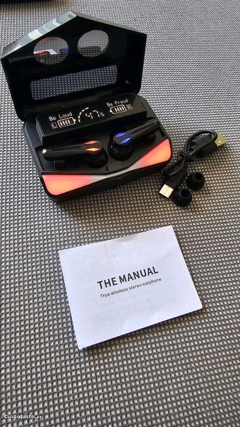 Preço: 16 €Auriculares Bluetooth c/ powerbank NOVOS